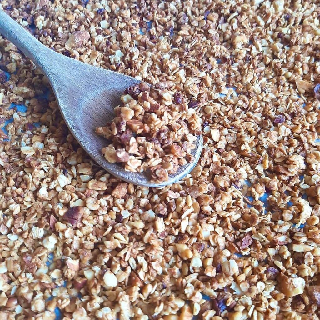 3. spegnere la fiamma e aggiungere l’avena, le noci e le mandorle tagliate grossolanamente
